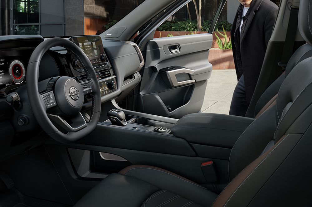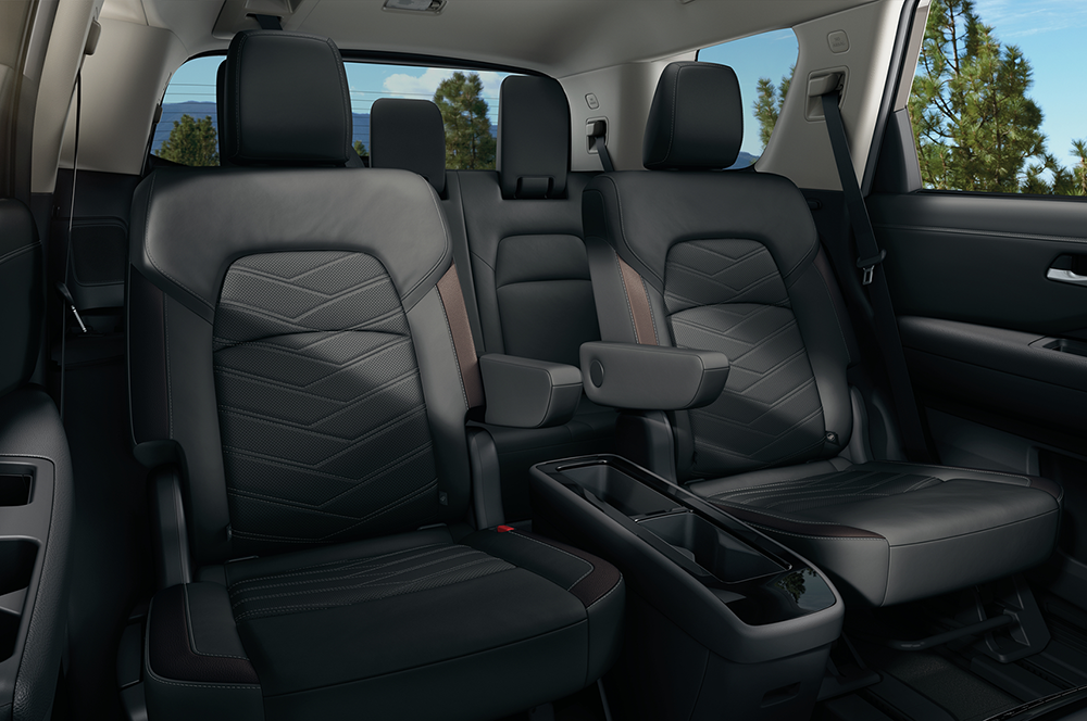 The 2025 Nissan Pathfinder is offered for sale at Future Nissan of Folsom in five trims: S, SV, SL, Rock Creek, and Platinum. All trims seat eight except the Rock Creek, which comes standard with second-row captain’s chairs for a seven-passenger layout (optional on other trims). Front-wheel drive is standard, with all-wheel drive optional on most trims but standard on Rock Creek. Here is a review of each trim for your consideration.The base S trim includes all the essentials like 18-inch wheels, LED headlights, three-zone climate control, cloth seats, an 8-inch touchscreen with Apple CarPlay and Android Auto, and Nissan Safety Shield 360. Stepping up to the SV model adds convenient amenities like roof rails, heated mirrors, power driver’s seat, heated front seats, a leather-wrapped steering wheel, Wi-Fi hotspot, and Nissan’s ProPilot Assist with adaptive cruise control. An SV Premium package adds a panoramic sunroof, towing features, and captain’s chairs. The SL trim builds onto the SV with more luxury features like leather seats, a power passenger seat, heated steering wheel, second-row sunshades, a 9-inch touchscreen with navigation and wireless Apple CarPlay, wireless charging, and a surround-view camera. There is also an optional SL Premium package that adds a Bose audio system, a panoramic sunroof, 20-inch wheels, and towing upgrades. The off-road-oriented Rock Creek trim comes with standard all-wheel drive, all-terrain tires, raised suspension, tubular roof rails, synthetic leather seats, heated second-row captain’s chairs, removable center console, and rugged exterior styling. Rounding out the bunch is the most luxurious Platinum trim that showcases premium leather, ventilated front seats, heated second-row seats, a head-up display, digital gauges, Bose audio, a panoramic sunroof, a hands-free liftgate, and power-folding mirrors.